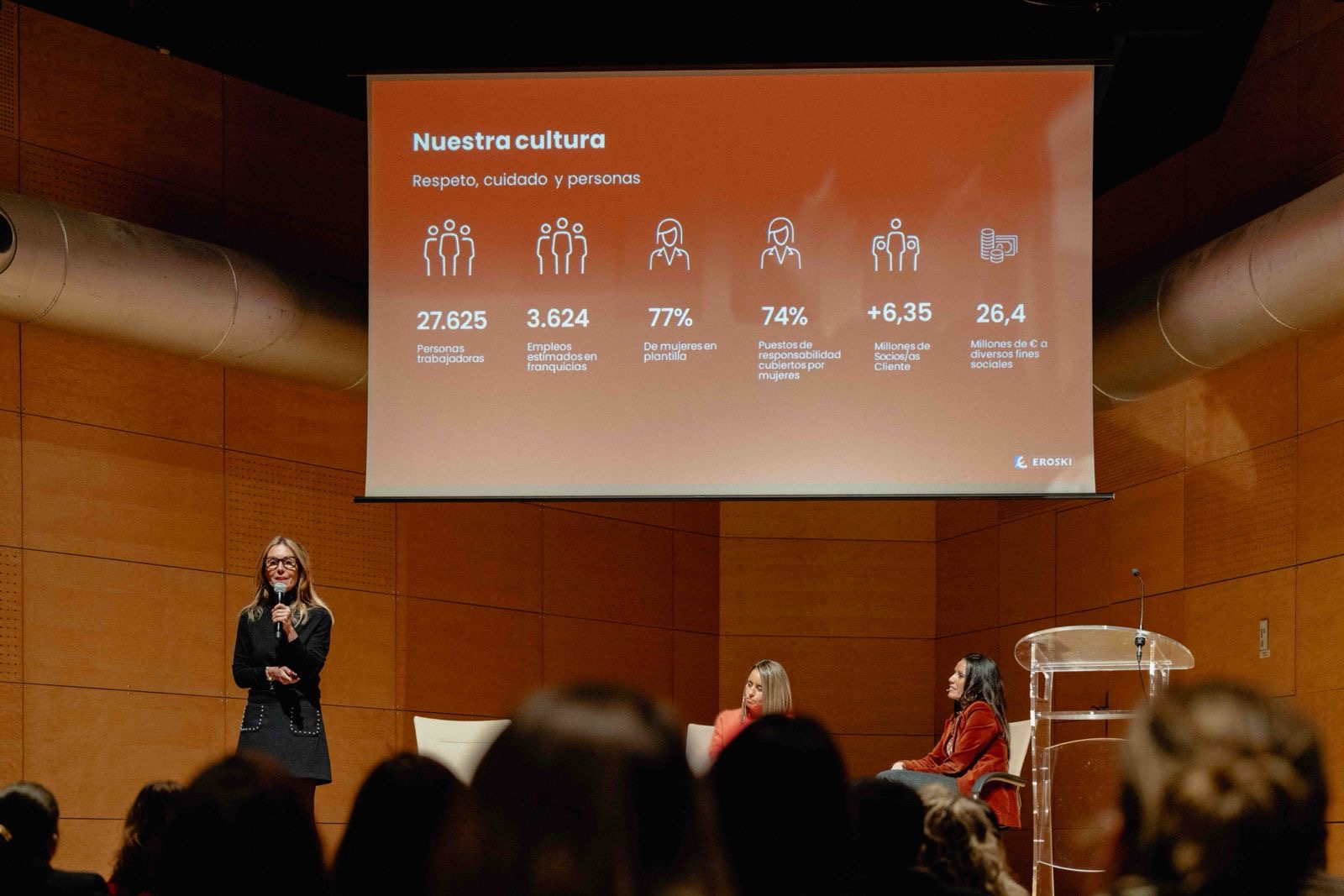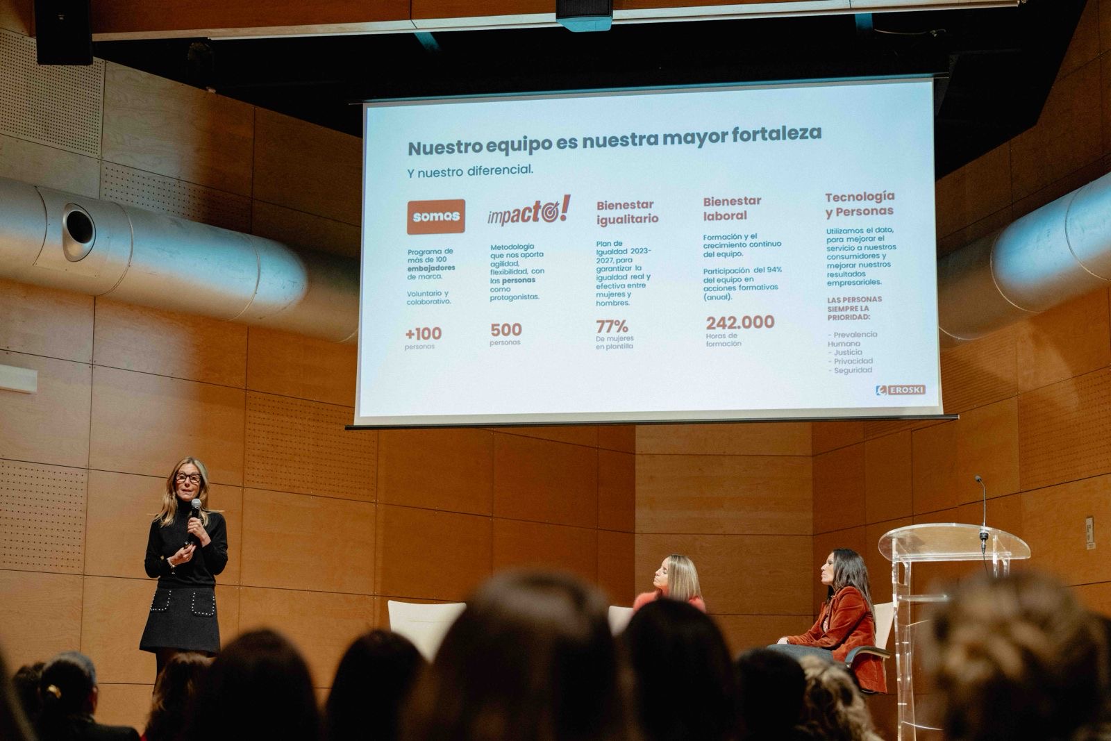 Ainhoa Oyarbide, Directora de Marca y Comunicación de Grupo Eroski. Compartió el modelo de negocio de la compañía basado en el talento y la pasión de sus equipos.